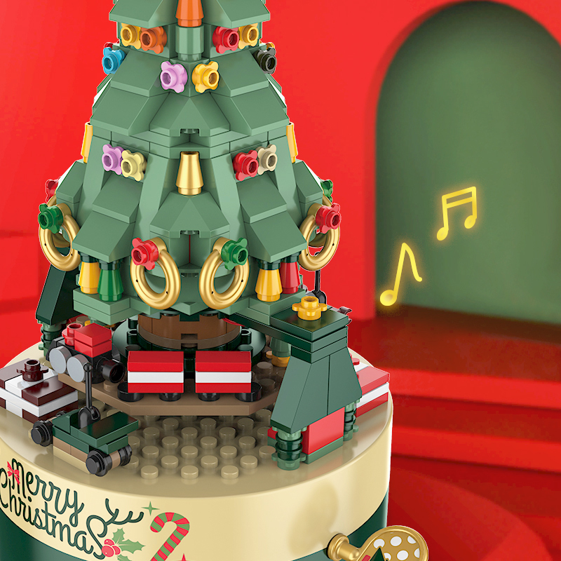 將積木與音樂盒完美結合,好玩又時尚。純機械動力設計更環保,音樂盒發條轉動帶動載滿禮物的車子開動,益智拼搭,時尚美觀,還能充當家居精品擺件。