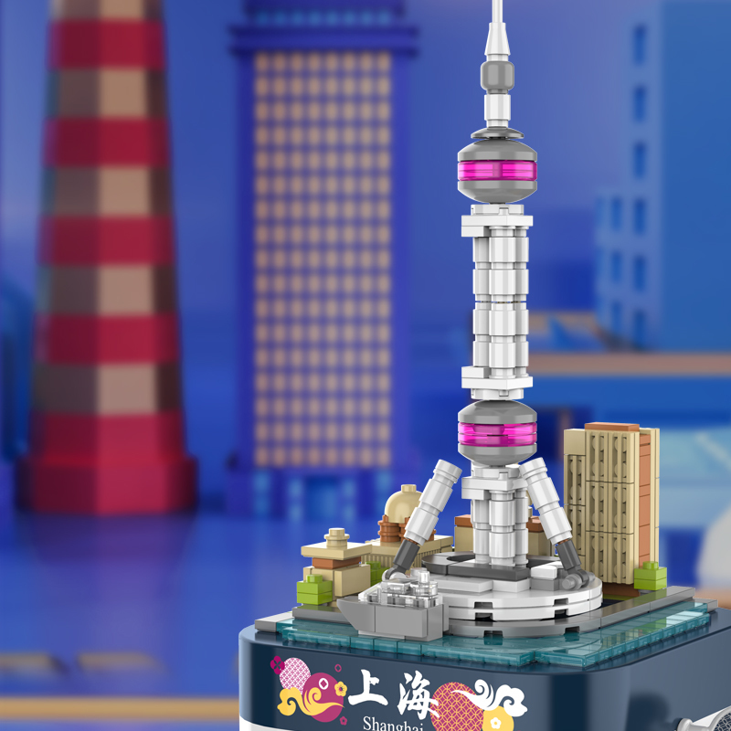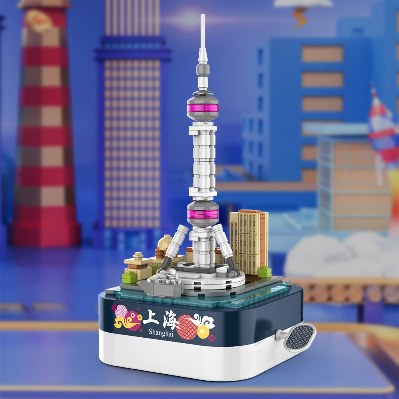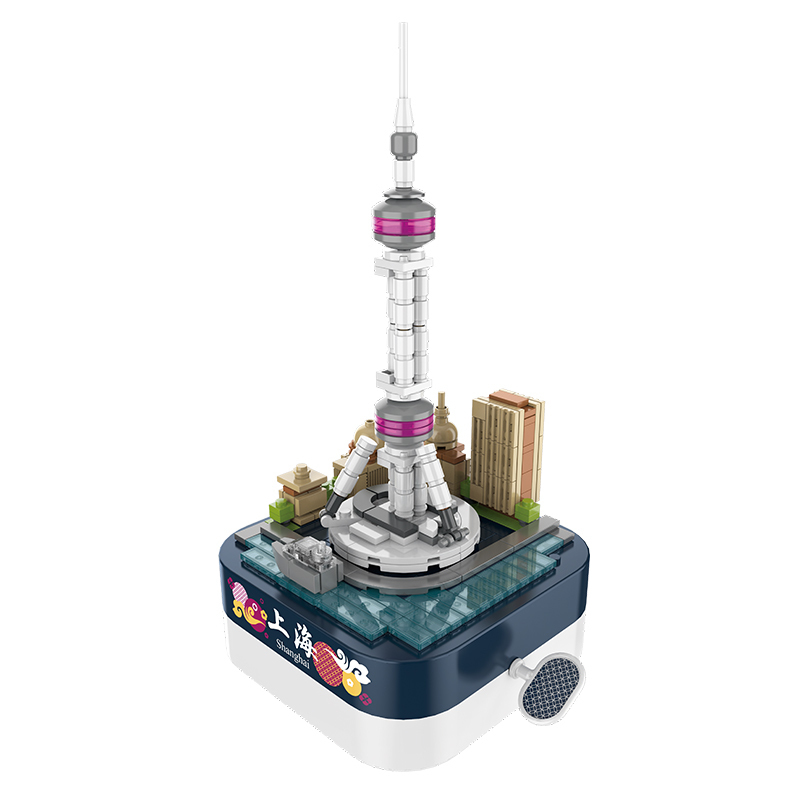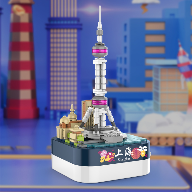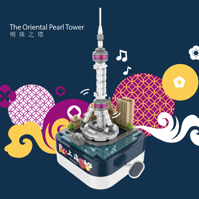 屹立于上海的東方明珠廣播電視塔,絕對是代表國家繁榮進步的標志性建筑。轉動發條,整座塔在音樂下旋轉,歌頌東方明珠的偉績。