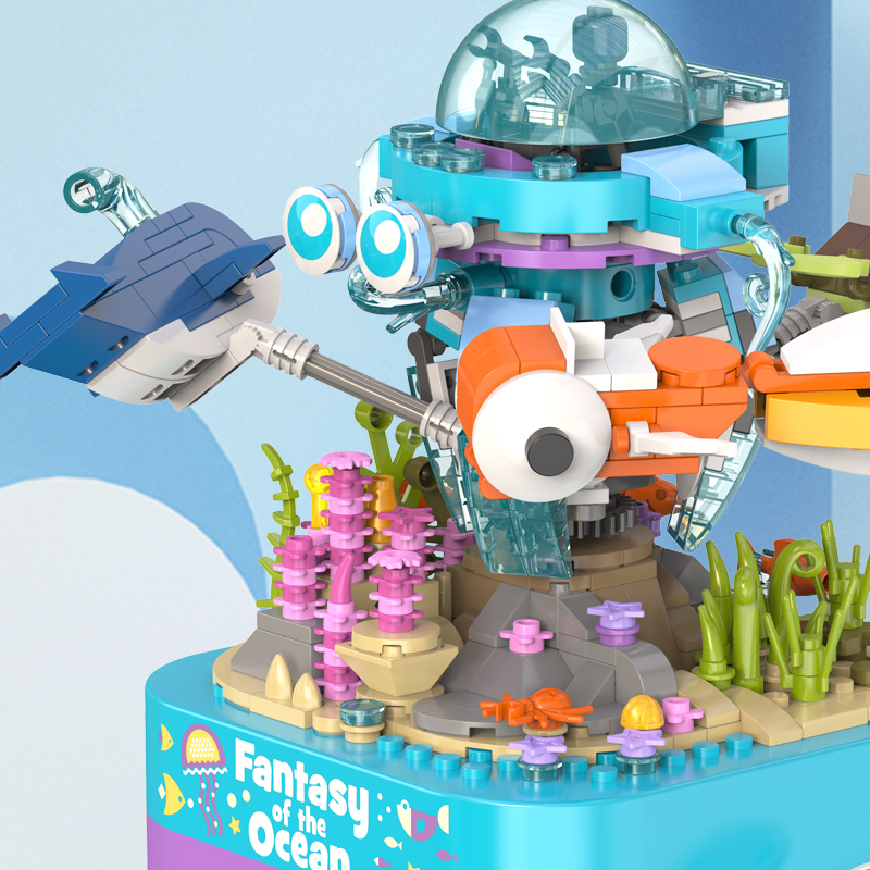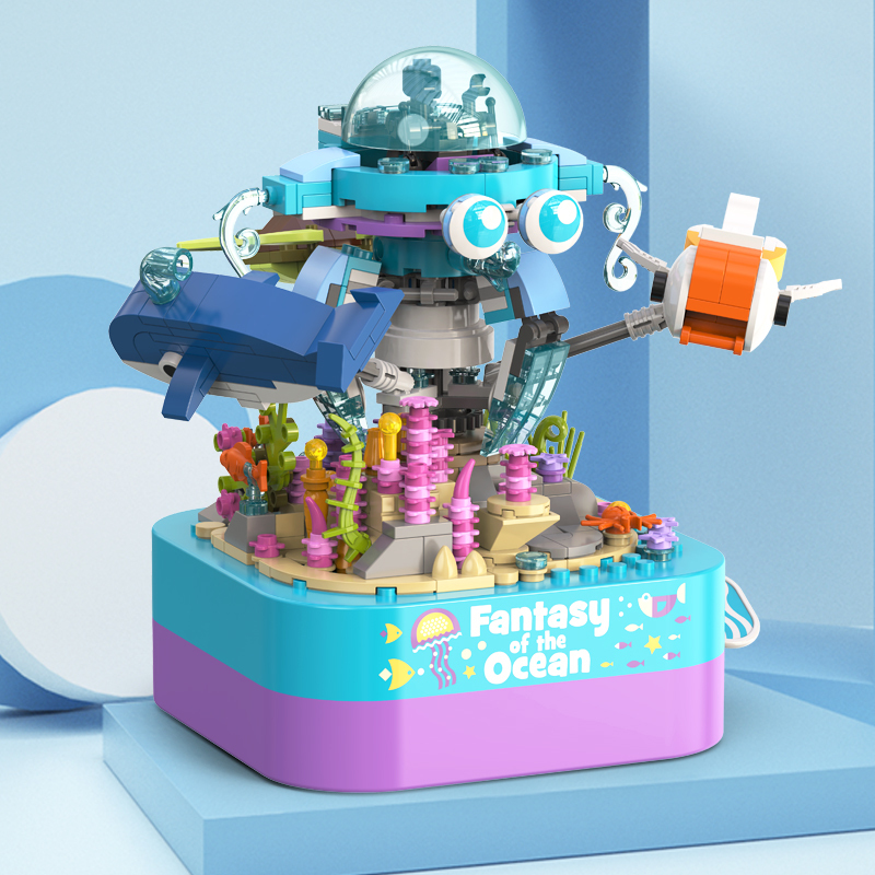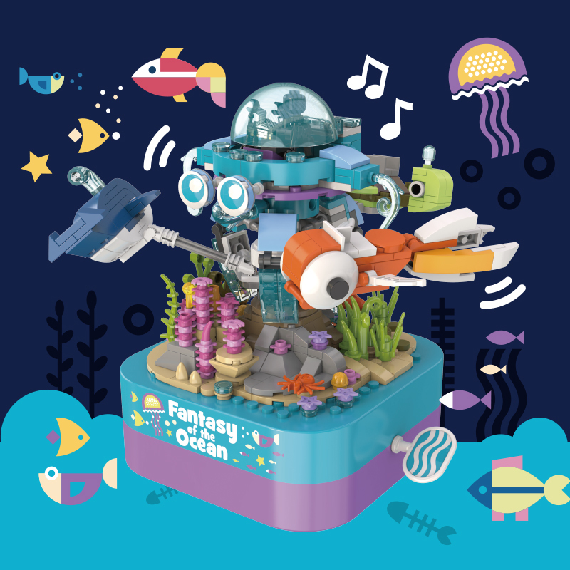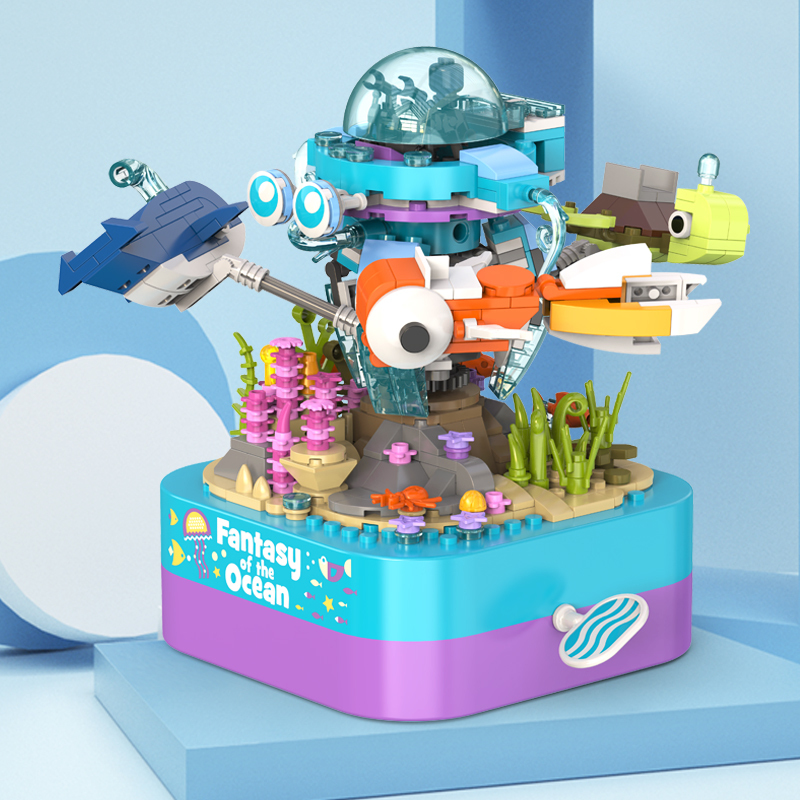 將積木與音樂(lè)盒完美結(jié)合,好玩又時(shí)尚。純機(jī)械動(dòng)力設(shè)計(jì)更環(huán)保,音樂(lè)盒發(fā)條轉(zhuǎn)動(dòng)帶動(dòng)整個(gè)海洋館旋轉(zhuǎn),益智拼搭,時(shí)尚美觀,還能充當(dāng)家居精品擺件。