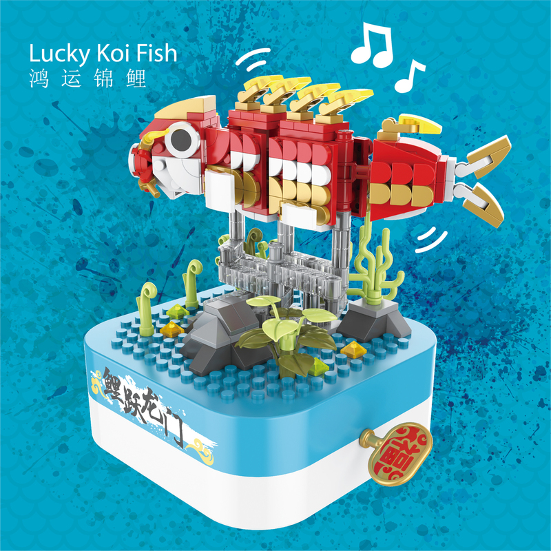 將積木與音樂盒完美結合,好玩又時尚。純機械動力設計更環保,音樂盒發條轉動帶動錦鯉輕盈的游動,益智拼搭,時尚美觀,還能充當家居精品擺件。
